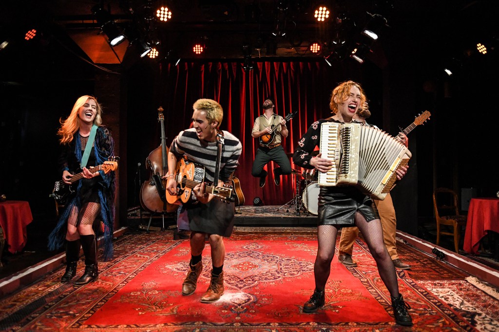 The cast makes a great band together. They all sing very well in addition to playing multiple instruments. Emile Modaff is excellent as Abigail Bengson. They play Abigail so well that the audience isn’t sure if this story is actually about them. Royen Kent is charming as Shaun and he plays the mandolin beautifully. Alec Phan alternates playing Shaun with Royen. Mel Vitaterna’s solo as Max is superb. The rest of the ensemble includes Grace Bobber, David Gordon-Johnson, Lucas “Looch” Johnson, and Brennan Urbi.