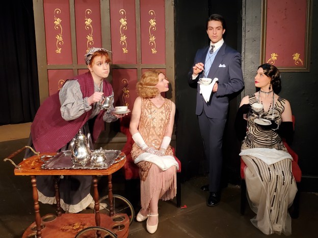 The entire cast is excellent. Shelley DeHosse is hilarious as the maid, especially when she is saying lines to obviously give information about the play that a normal person wouldn’t say. Claire Rutkowski is so funny over-acting as one of the women the man is dating. Sarah Seidler is great as the other woman, still in love with her missing husband. Croix Dakota Perkins is solid as the mysterious man in the middle of all of this. Eric S. Prahl is good and silly as the wheelchair-bound friend. Valerie Gerlock and Gabrielle Arietta Cross are solid as the self-engrossed theatre critics. Lastly, Adam Hoak is spot on as the old school Inspector Hound searching for answers.