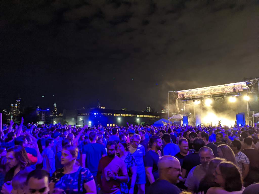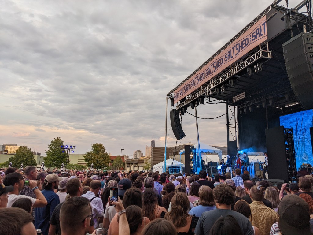 It’s opening week at The Salt Shed located on the Chicago River directly west of Goose Island. While the indoor venue is still under construction, they have begun a two month season of outdoor concerts. It has a street festival vibe with many food options, bars, and other types of vendors. With a GA ticket, it is standing room only and there is nowhere to sit. There is an ADA section far back with seats. There is also a premium section on the river side with a limited amount of seating. It’s a great addition to the Chicago summer music scene.