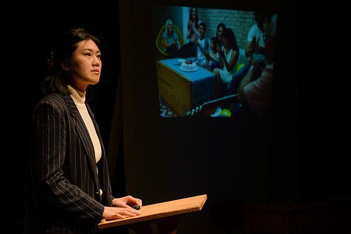 The odd numbered scenes feature Melanie McNulty. The even numbered scenes feature Kaitlyn Cheng. They never interact with each other. Thus, this play feels like two one woman shows, intermixed.