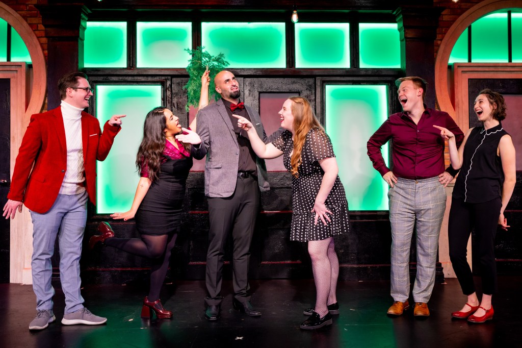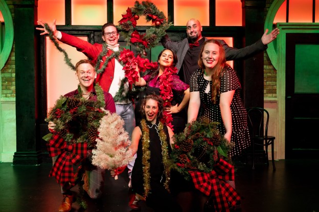 The entire cast is excellent. Tim Metzler is hilarious as the coworker who when he does mind reading, his body takes a big toll to do so. Javid Iqbal is so funny as the Holiday Cher and in the song about the Muslim holiday, Eid. Bill Letz is superb as the guy who just can’t get foreplay quite right. Yazmin Ramos cracks everyone up as the love interest in the Hallmark Channel movie and as she flies across the stage in the office chair dance. Maureen Boughey is so good as the star of the Hallmark movie, a high powered consultant from Boston sent to Holly, Iowa. Lastly, Jenelle Cheyne is fantastic as the deeply dark elf of death.