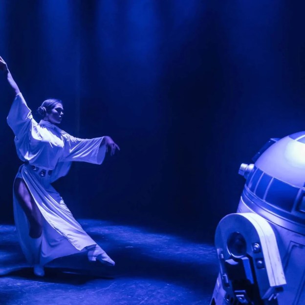 Most of the acts are burlesque dancing by characters from Star Wars such as Princess Lea and C3PO. They also include others on the side such as Jabba the Hut and R2D2.